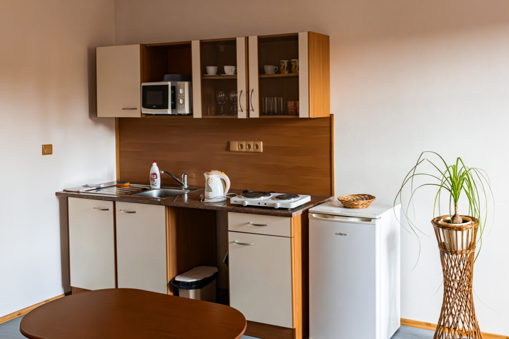 - v kuchyni jsou 2 samostatná lůžka nebo rozkládací pohovka umožňující přespání dalších až 2 osob